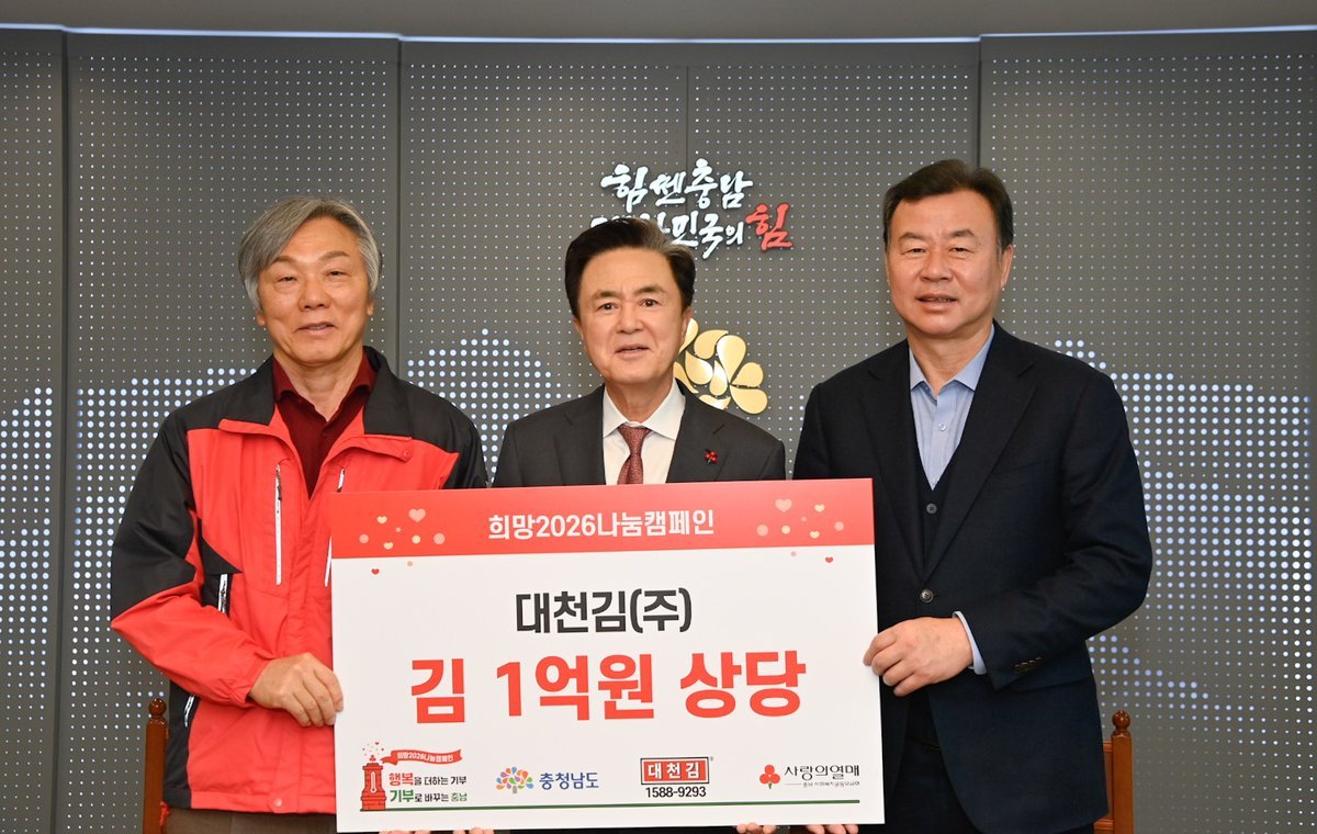 [세종타임즈] 충남도는 대천김으로부터 1억원 상당의 김을 기탁받았다고 27일 밝혔다.