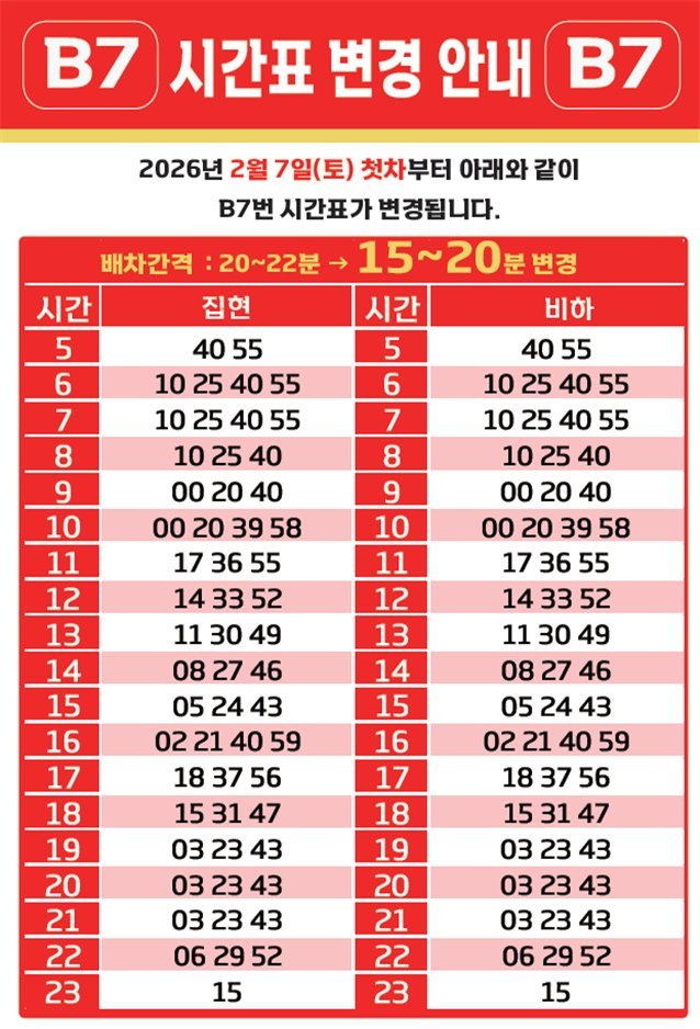 천흥빈 교통국장은 “B7번 노선은 세종과 청주를 잇는 핵심 광역교통 축으로 시민 이용이 꾸준히 증가하고 있다”며 “이번 증차와 배차 단축을 통해 대중교통 이용 편의성을 높이고 광역 이동 수요에 적극 대응할 것”이라고 말했다.