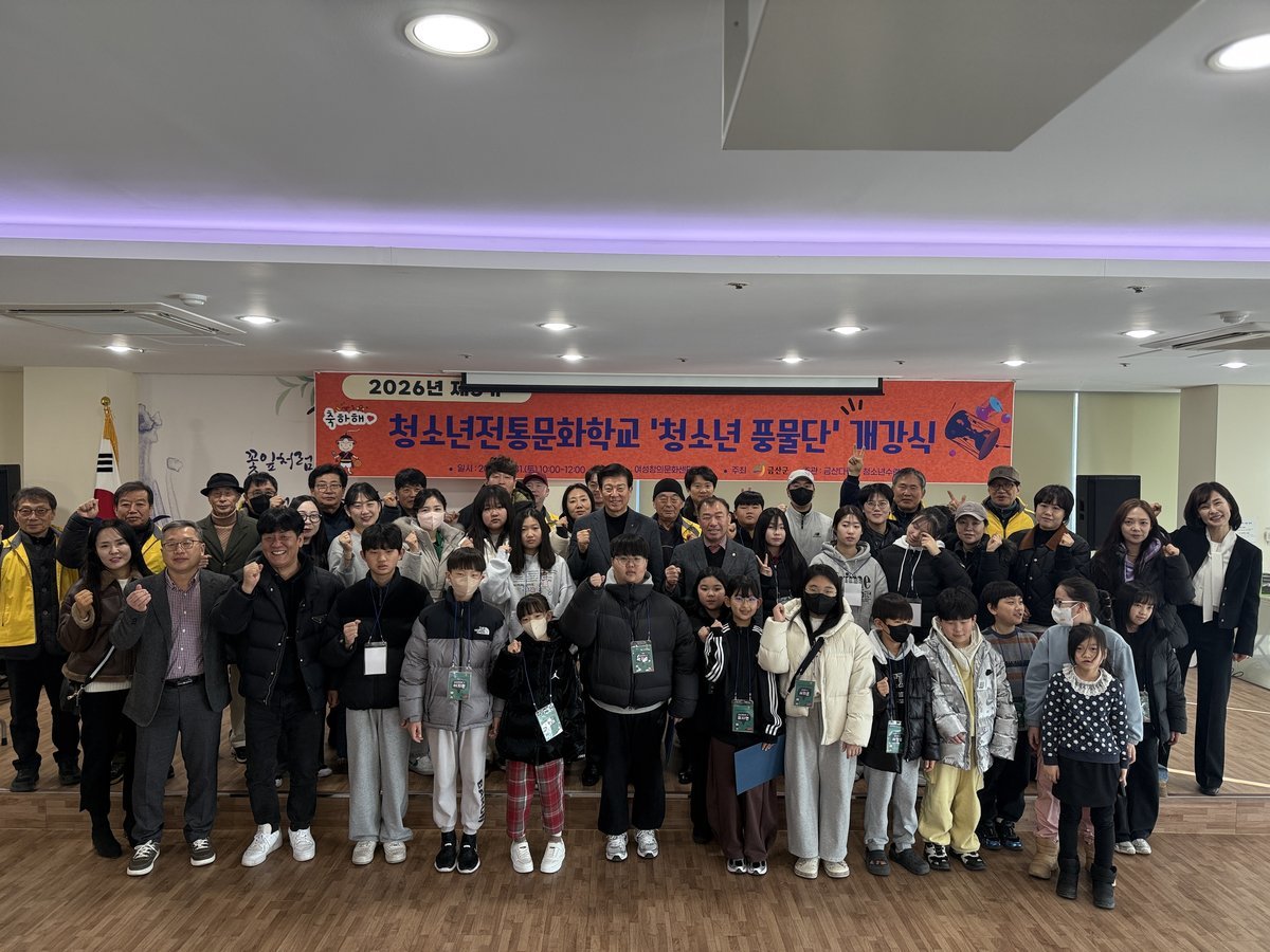 [세종타임즈] 금산군은 1월 31일 금산읍 청산회관 여성창의문화센터에서 지역 청소년들의 전통문화 계승과 예술적 감수성 함양을 위한 2026년 제3기 청소년전통문화학교 청소년 풍물단 개강식을 성료했다.