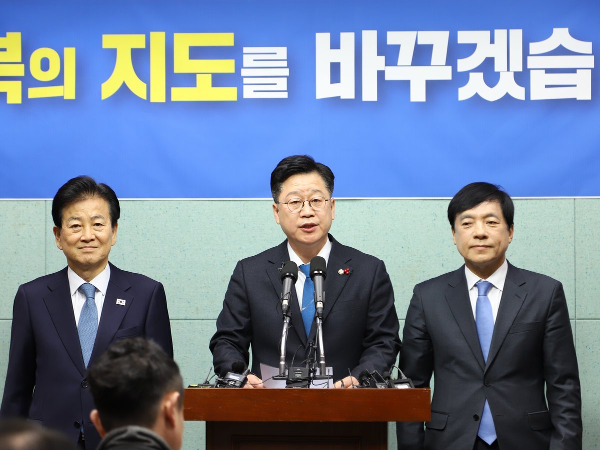[세종타임즈] 전북도지사 출마를 선언한 안호영 국회 기후에너지환경노동위원장은 2일 기자회견을 열고 회견에 동석한 정동영 통일부 장관과 이성윤 더불어민주당 최고위원, 동참 의사를 밝힌 김윤덕 국토교통부 장관과 함께 전주·완주 행정통합을 추진하겠다는 입장을 밝혔다.