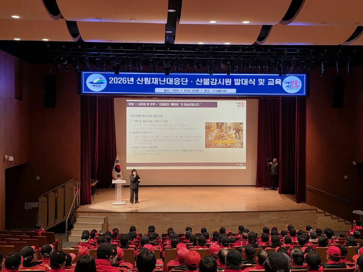 [세종타임즈] 예산군은 산불 등 산림재난에 선제적으로 대응하기 위해 지난 4일 추사홀에서 ‘2026년 산림재난대응단 및 산불감시원 발대식’을 개최하고 본격적인 산불 예방·대응 활동에 돌입했다.