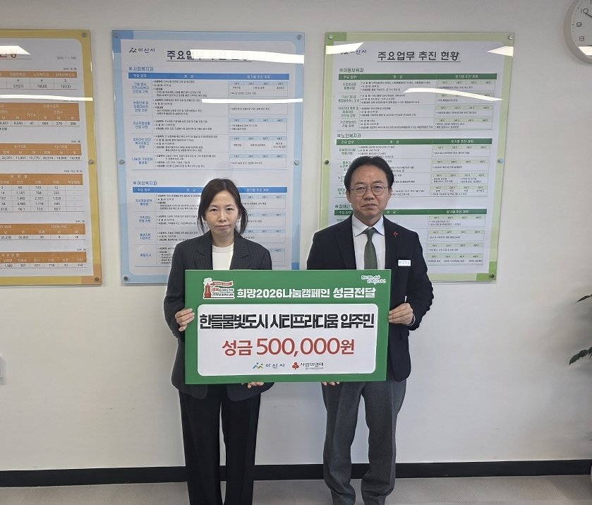이기석 아산시 복지국장은 “입주민들이 자발적으로 마음을 모아 지역의 어려운 이웃을 위해 나눔을 실천해 주셔서 감사드린다”며 “전해주신 성금은 꼭 필요한 곳에 따뜻한 아산을 만드는 데 의미 있게 활용하겠다”고 밝혔다.