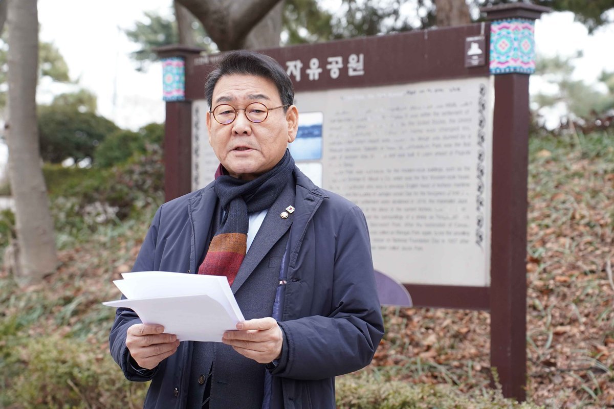 [세종타임즈] 김교흥 인천 국회의원은 이완석 광복회 인천지부장과 함께 24일 3.1절을 맞아 인천 자유공원을 방문해 한성임시정부 13도 대표자 회의 터를 찾아 독립운동의 역사적 의미를 되새기고 인천 독립운동사 복원과 독립유공자 예우 강화를 약속했다.