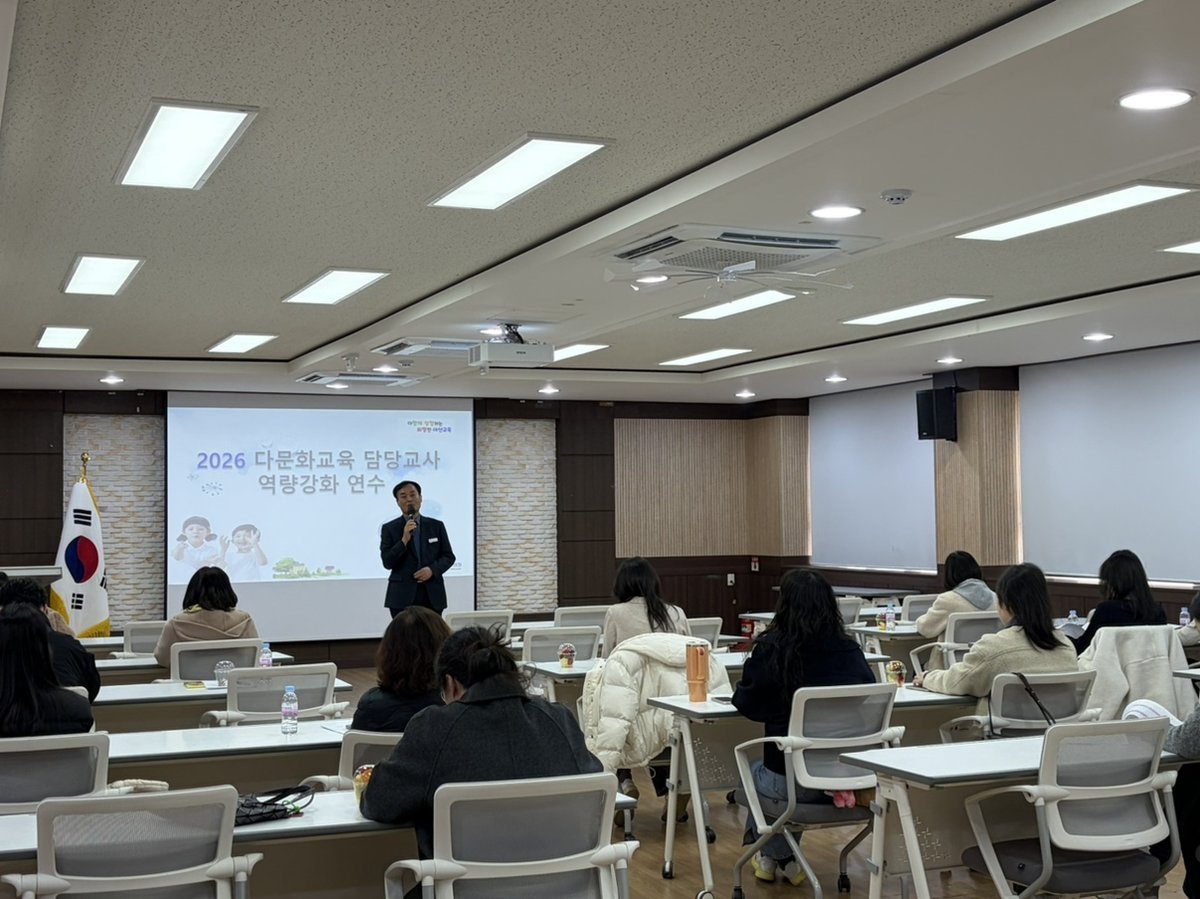[세종타임즈] 아산교육지원청은 2월 26일 아산교육지원청 대회의실에서 관내 밀집학교 및 한국어학급 운영교 소속 통합학급 담임교사 및 다문화교육 업무 담당 교사, 한국어학급 담당 교사를 대상으로 다문화 감수성 함양과 현장 전문성 강화를 위한 교사 연수를 실시했다.
