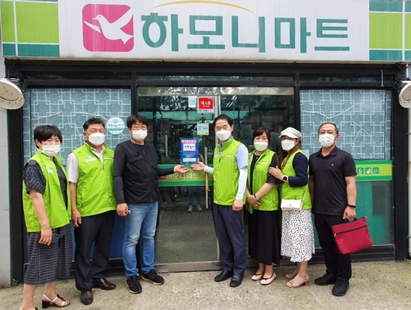 하모니마트는 일봉동 행복키움지원단에서 나눔문화 확산을 위해 추진하고 있는 착한업소 결연사업 15호점으로 7월부터 매월 저소득 취약계층 10명에게 사랑의 생필품을 지원하고 있다.