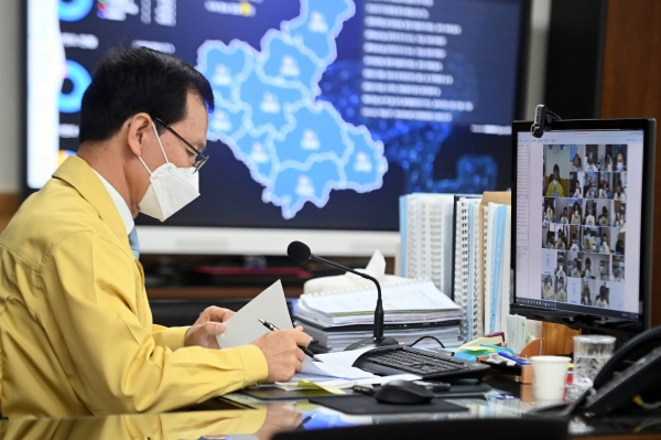 [세종타임즈] 조병옥 음성군수가 6일 영상회의로 진행한 주간업무회의에서 “사회적 거리두기 3단계의 4주 연장으로 변경된 방역지침에 대해 일선 현장에서 혼선이 없도록 안내하고 코로나19 방역 대응에 최선을 다해 달라”고 당부했다.