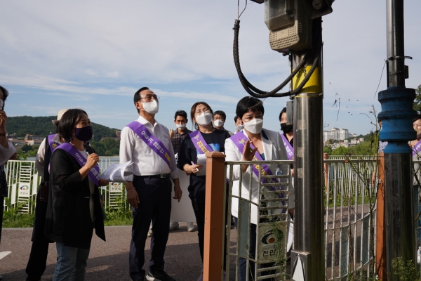 이날 박 시장과 시민참여단은 윤금이 성평등 전문관의 ‘공원 내 공공시설 모니터링 방법’을 청취한 후, 2개조로 나누어 공원내 공공시설과 산책로에 대한 안전성, 접근성, 편의성, 쾌적성 등에 대한 모니터링을 집중적으로 실시했다.