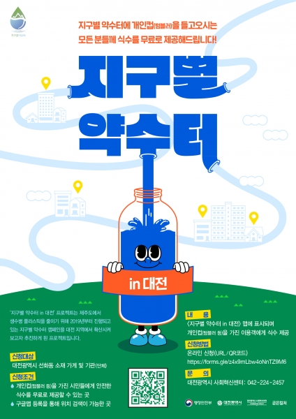 ‘지구별 약수터 in 대전’은 생수병 플라스틱을 줄이기 위해 2019년부터 제주도에서 진행되고 있는 지구별 약수터 캠페인을 대전 지역에서 확산시키기 위해 기획됐다.