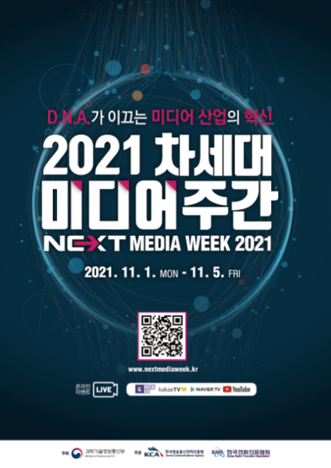 [세종타임즈] 과학기술정보통신부가 주최하고 한국방송통신전파진흥원과 한국전파진흥협회가 공동 주관하는‘2021 차세대 매체 주간’행사가 11월 1일부터 5일까지 온라인으로 개최된다.