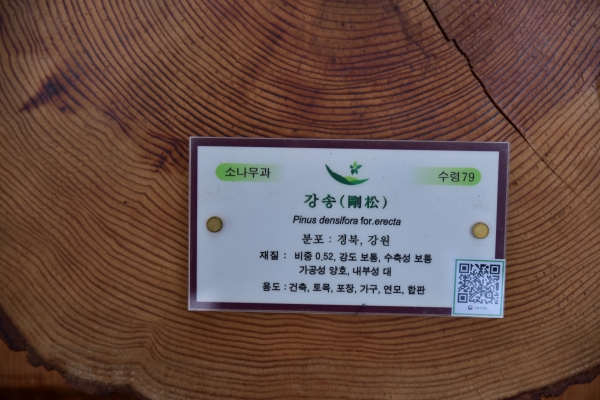 핸드폰으로 산림박물관 제1전시실의 국내산 목재표본에 부착되어 있는 큐아르 코드를 사진 촬영하면 국립수목원 국가식물종정보시스템으로 바로 연결되어 촬영된 나무에 대한 정보를 확인할 수 있다.