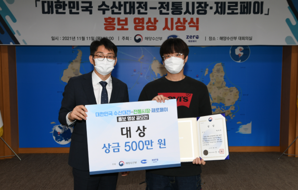 [세종타임즈] 해양수산부는 한국수산업경영인중앙연합회, 한국간편결제진흥원과 함께 개최한 ‘‘대한민국 수산대전-전통시장 제로페이 행사’ 활성화를 위한 홍보 영상 공모전’의 수상작을 선정하고 11월 11일 정부세종청사에서 시상식을 개최했다.