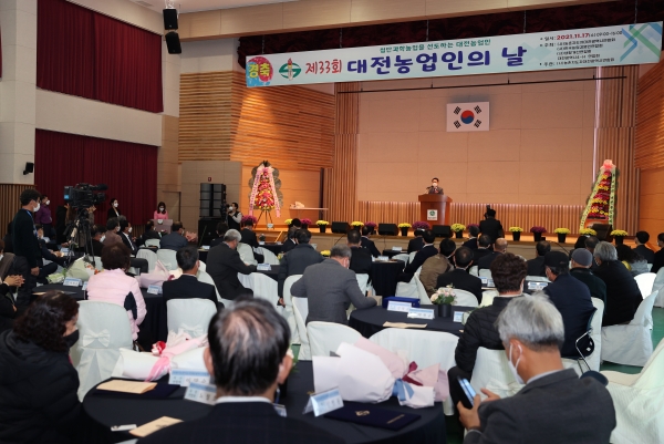 그러면서 “코로나19와 수입농산물 시장 점유율 상승, 농자재 가격 상승 등 힘든 여건에도 불구하고 흔들림 없이 제자리를 지켜주시는 농업인 여러분께 존경과 감사의 말씀을 드린다”며 “오늘 개최되는 농업인의 날 행사가 시민에게 농촌·농업의 소중함을 알리고 농업인들에게는 긍지와 사명감을 고취시켜 대전농업을 알차게 가꿔 나가는 동시에 우리 지역사회가 더욱 발전되는 계기가 되기길 바란다”고 말했다.