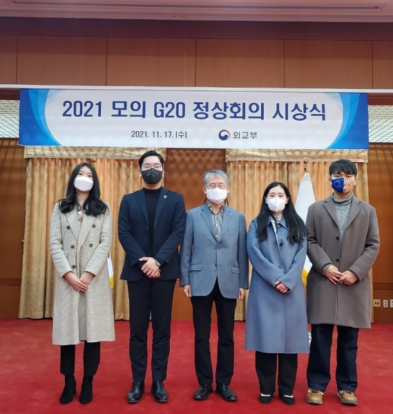모의 G20 정상회의는 지난 10월‘코로나19로부터의 회복’을 주제로 개최됐으며 보건, 개발, 기후환경·에너지의 3개 분야에서 참가 학생들의 열띤 토론을 통해 최우수상 2명, 우수상 4명이 선정됐다.