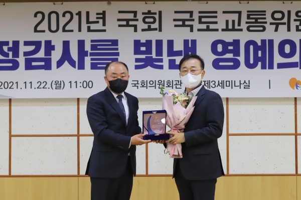한편 이번 국정감사 우수의원 선정은 국토교통위원회의 피감기관인 국토교통부 소속 공무원 노동자들이 국정감사에서 맹활약상을 펼친 의원들을 직접 선정했다는 점에서 다른 기관이 선정하는 우수의원과는 특별한 차이가 있는 것으로 알려졌다.