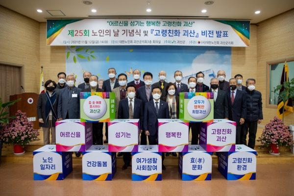 [세종타임즈] 충북 괴산군이 제25회 노인의 날 기념식에서 초고령화 사회에 대비하기 위한 ‘어르신을 섬기는 행복한 고령친화 괴산’의 비전을 발표했다.