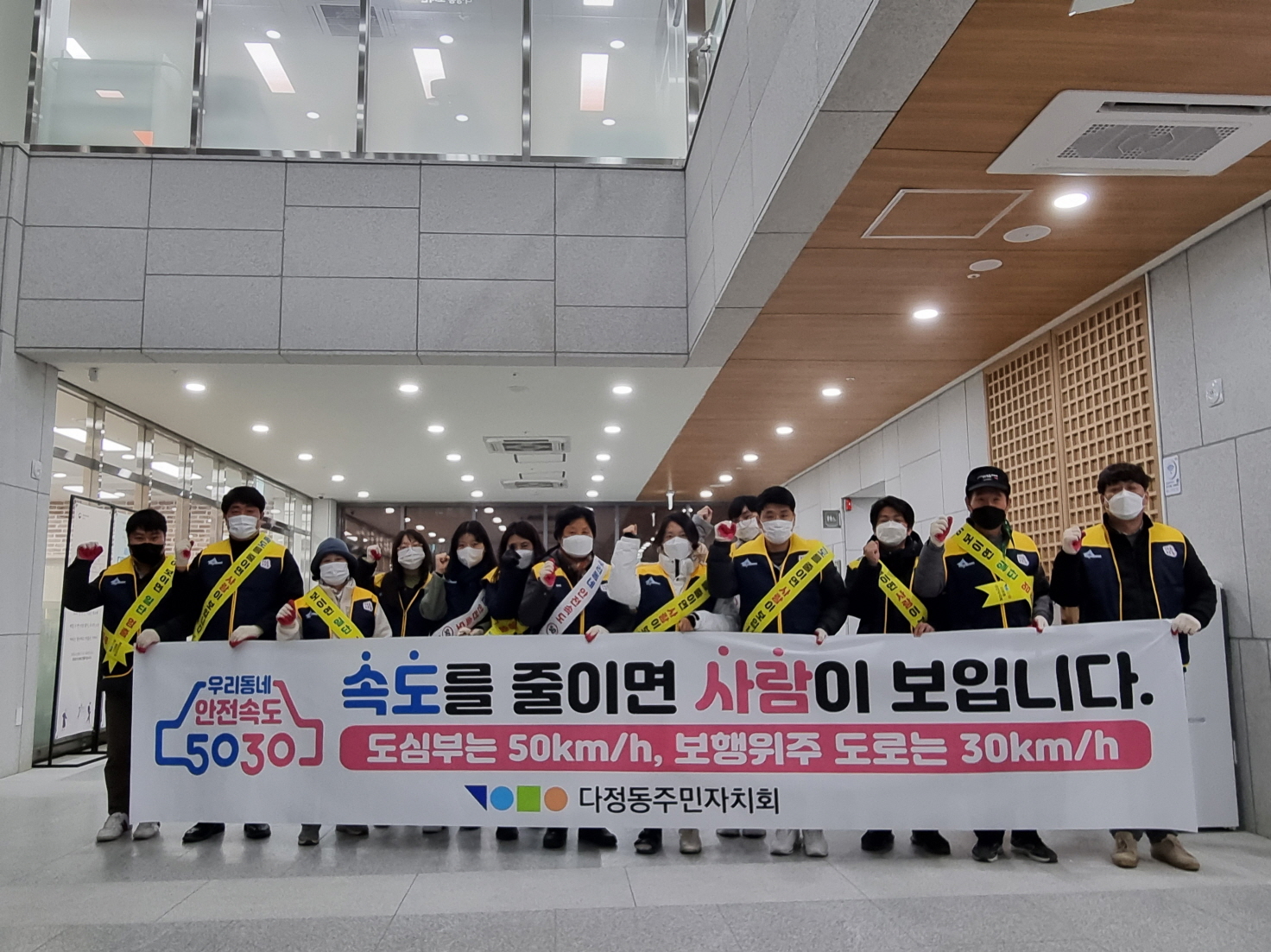 다정동 주민자치회는 보행자 안전 및 사망자 감소를 위해 올해 마을계획사업으로 5030안전속도 캠페인을 추진하고 있으며, 교통사고 장소, 유형 등을 담은 마을안전지도도 연내 발간할 예정이다.