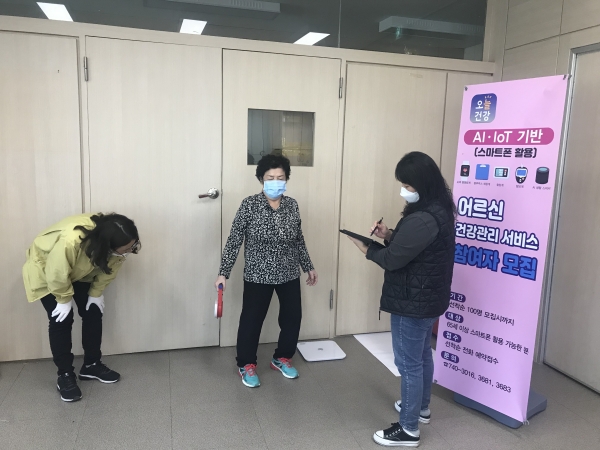 대상자에게 활동량계. 체중계와 질환여부에 따라 혈압계, 혈당계 등이, 허약·독거노인에게는 AI생활스피커가 지급됐다.