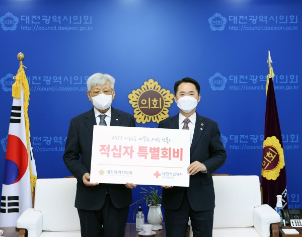 [세종타임즈] 대전광역시의회는 1일 의장 접견실에서 대한적십자사 대전세종지사에 적십자 특별회비를 전달했다.