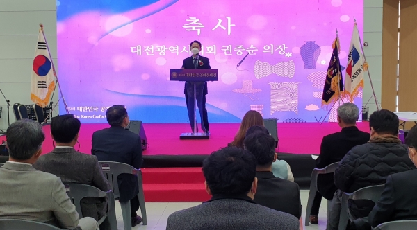 이날 개막식은 권중순 의장을 비롯해 서철모 행정부시장, 대전시의회 홍종원 행정자치위원장과 소순주 한국공예협동조합연합회장, 이종희 국립무형유산원장, 길순정 대전공예협동조합 이사장 등이 참석한 가운데 환영사, 축사 및 격려사, 테이프커팅 및 기념촬영, 행사장 관람 순으로 진행됐다.