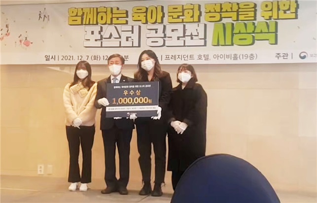 대상을 수상한 장소정 학생은 “대학에서 배운 창작에 대한 이론과 광고 디자인에 대한 실무가 이번 공모전을 준비하는 데 큰 도움이 됐다."라면서 "이번 공모전을 통해 우리 사회의 기업 내 육아에 대한 인식개선과 건전한 육아 문화 정착을 위해 노력하는 사회가 되길 희망한다."라고 말했다.