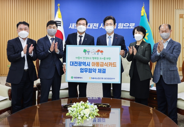 [세종타임즈] 대전시는 28일 2022년 아동급식카드사업의 원활한 추진을 위해 NH농협은행과‘대전시 아동급식카드 사업 업무협약’을 체결했다고 밝혔다.