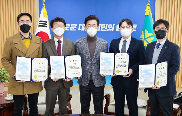 [세종타임즈] 대전시는 31일 오전 10시 대전시청 응접실에서 2021년 시정발전 유공자 12명에게 표창장을 수여했다.