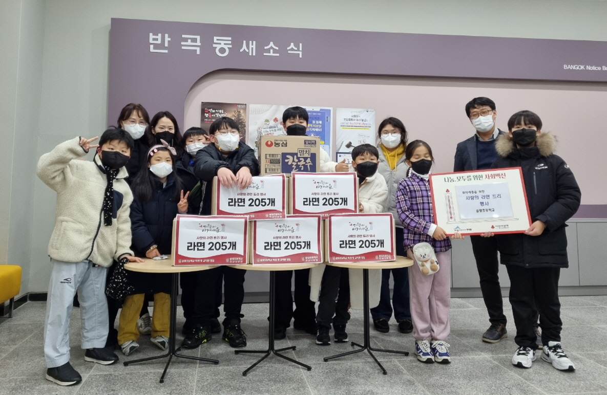 [세종타임즈] 세종특별자치시 반곡동이 최근 솔빛초 학생회와 경희대금강태권도 원생들이 취약계층을 위해 라면을 기부했다고 2일 밝혔다.