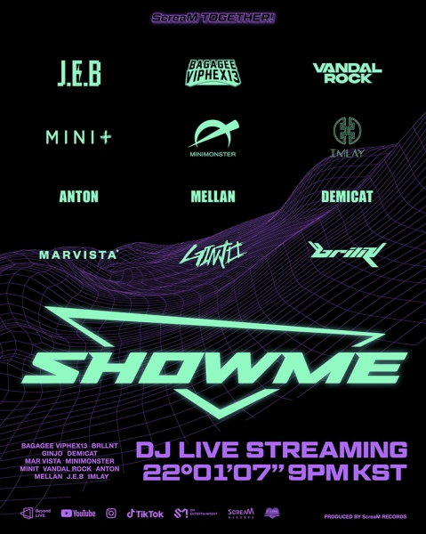또한 ‘SHOWME’ DJ 라인업에는 J.E.B, GINJO, IMLAY, MINIMONSTER, VANDALROCK, ANTON, MARVISTA, MELLAN 등 유명 DJ들이 대거 포함되어 기대를 더한다.