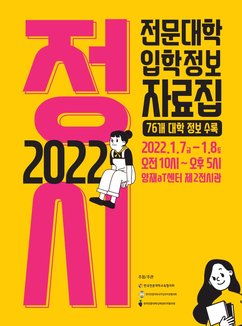 이번 박람회에는 한국영상대학교 등 전국 76개 전문대학이 참여하며, '2022학년도 정시 전문대학 입학정보 박람회' 공식 누리집(https://www.ipsigo.net/main.htm)을 통해 사전 예약이 가능하다.