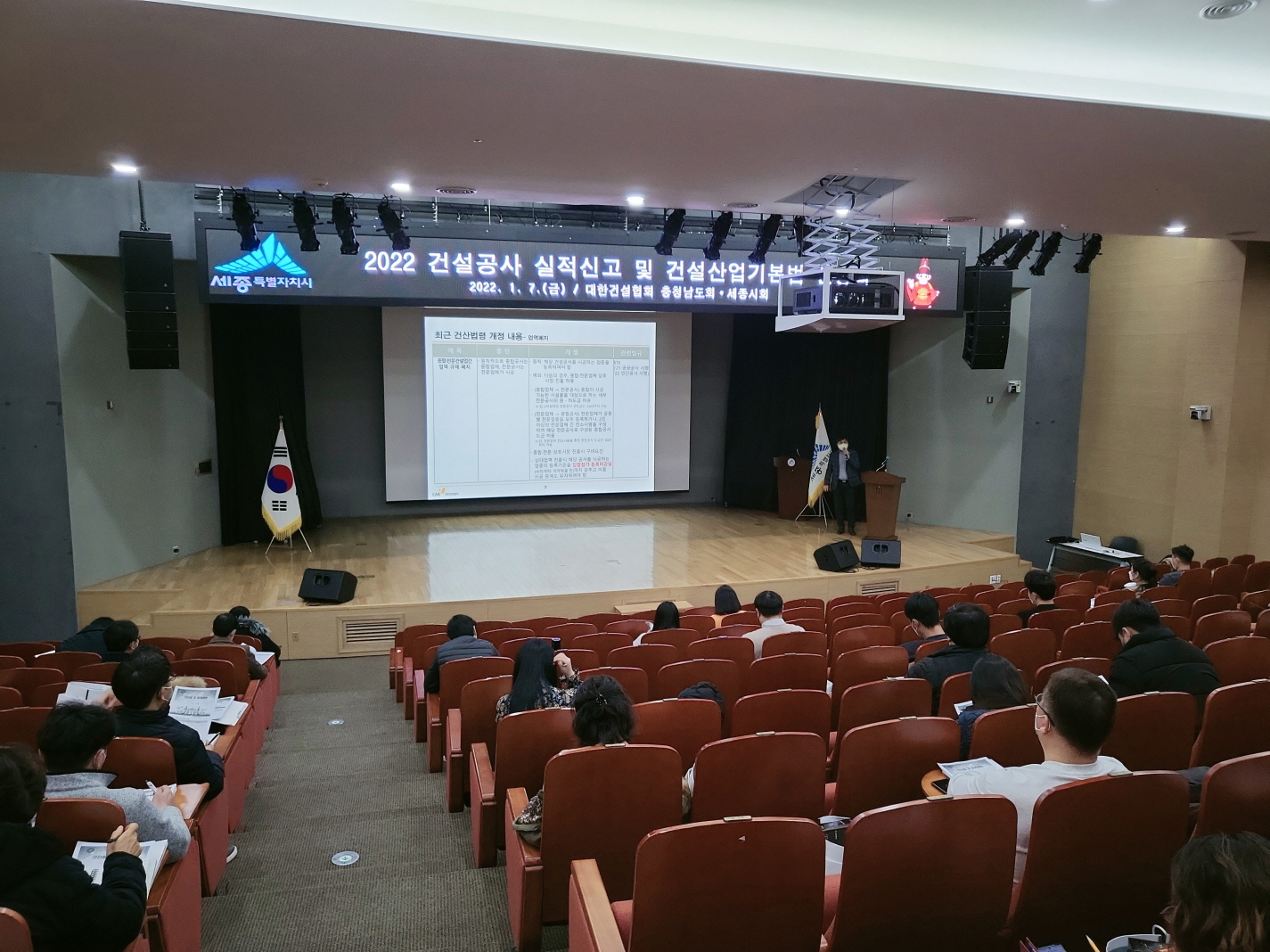[세종타임즈] 세종특별자치시가 지난 7일 시청 대회의실에서 관내 건설업체 18곳을 대상으로 건설업 관련 법규교육을 진행했다.