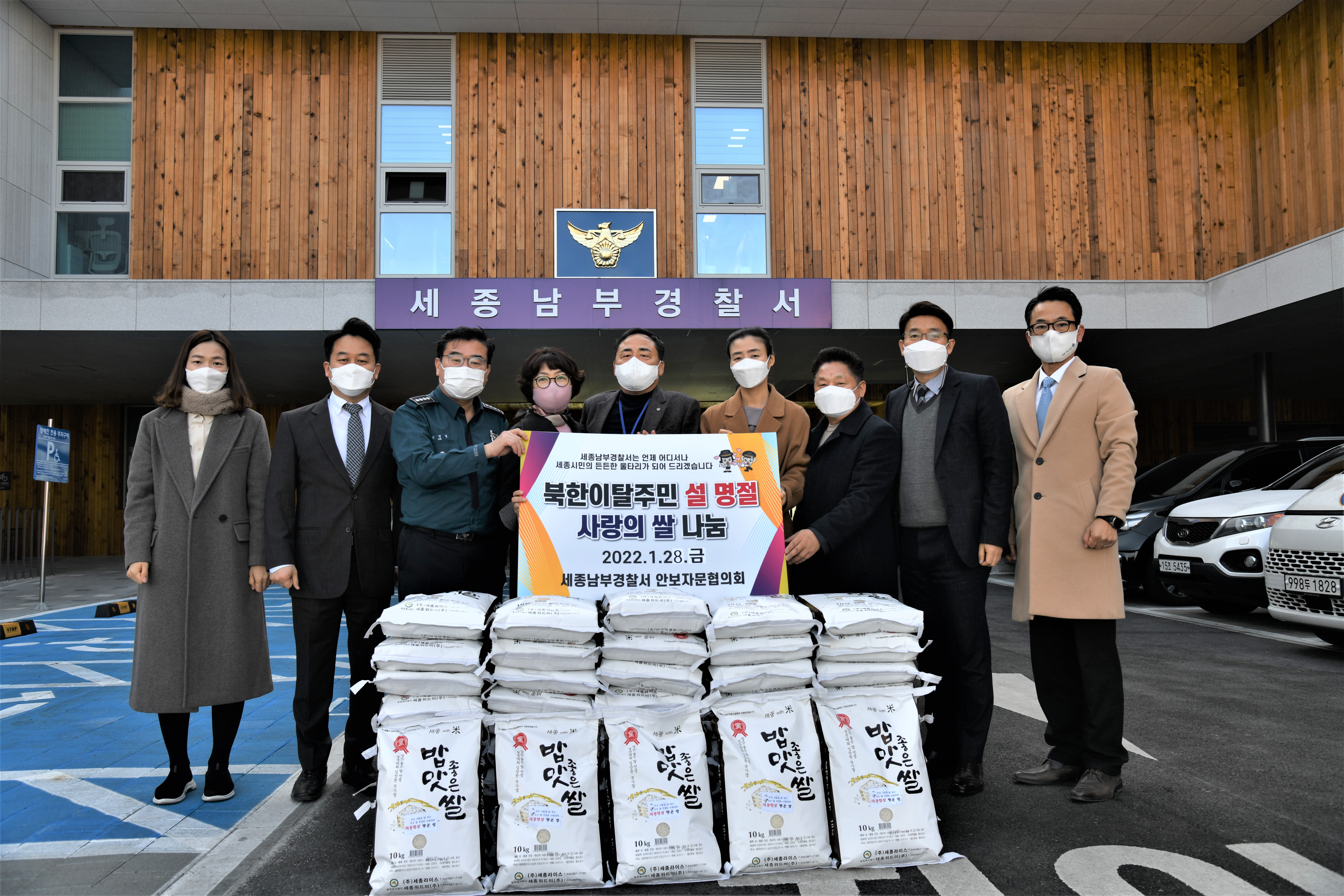 [세종타임즈] 세종남부경찰서 안보자문협의회는 1월 28일 경찰서 1층 현관에서 설 명절을 앞두고 북한이탈주민에게 사랑의 쌀(10Kg, 50포대) 나눔 행사를 가졌다.