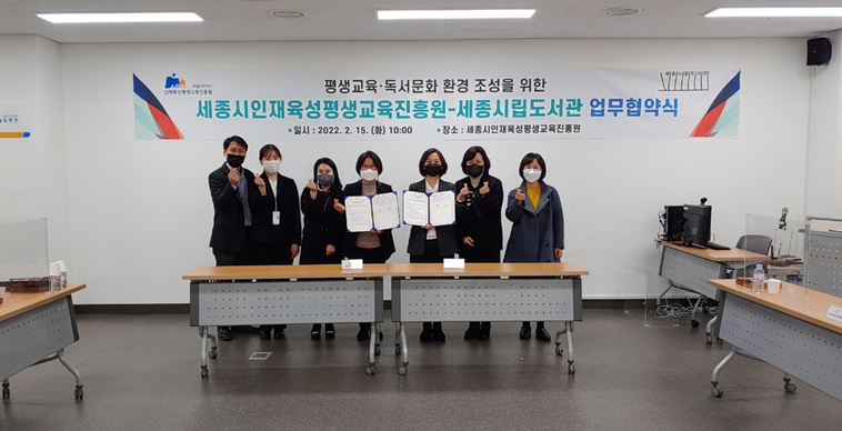 [세종타임즈] (재)세종특별자치시인재육성평생교육진흥원과 세종시립도서관이 15일 박연문화관에서 평생교육 및 독서문화 환경 조성을 위한 업무협약을 체결했다.