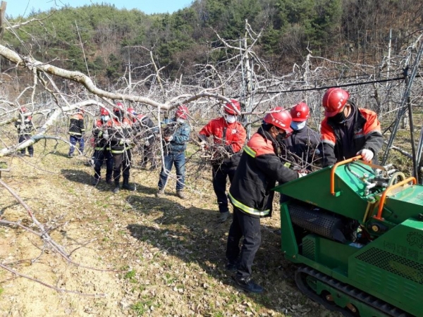 '영농부산물 파쇄 서비스'는 산불예방과 더불어 농업용 자원으로 재활용, 소각으로 발생하는 미세먼지 저감 대책에도 기여하고 있어 큰 호응을 얻고 있다.