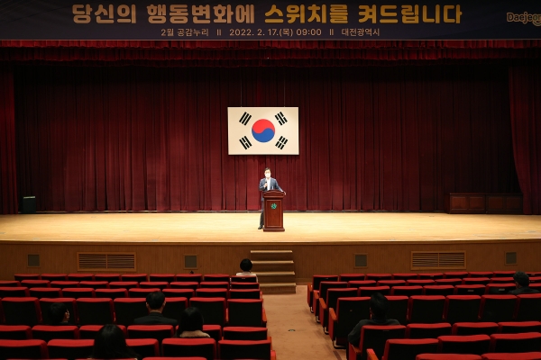 [세종타임즈] 대전시는 17일 시청 대강당에서 코로나19 방역업무 등 피로감이 누적된 전직원을 대상으로 소통전문가 유수란 강사를 초빙해“스트레스를 이겨내고 삶의 행복지수를 높이는 방법’에 대해 특강하는 등 올해 두 번째 공감누리를 개최했다.