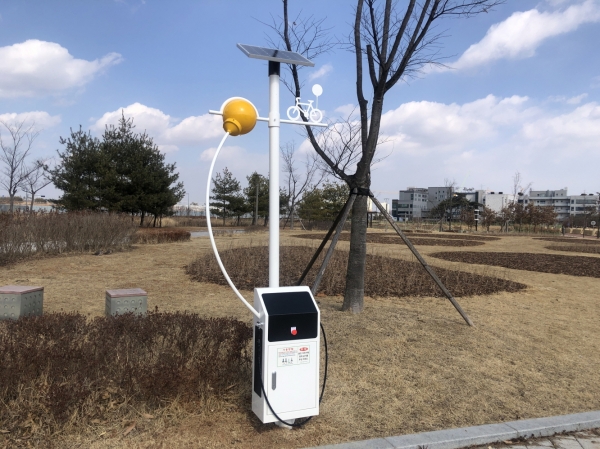 이번에 설치한 자전거 태양광공기주입기는 태양광을 이용해 친환경적이며 자동 공기 주입 방식으로 남녀노소 누구나 쉽게 이용할 수 있다.