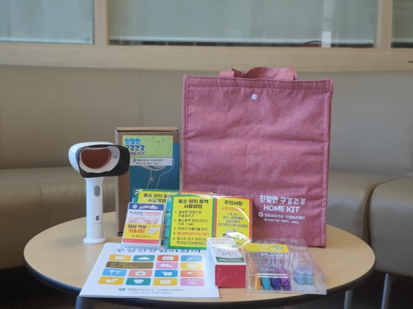 이 ‘친절한 구강건강 HOME 키트’는 치아세균체크기 외 구강건강길라잡이, 온가족 칫솔, 치실, 치간칫솔, 1달분의 불소양치용액 등 6종의 구강건강관리용품으로 알차게 구성돼 있다.