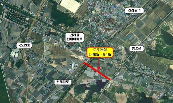 그동안 신례원리, 창소리 주민들은 예산읍내와 수철리 방면 왕래 시 신례원로와 벚꽃로를 연결하는 비좁은 1차로를 이용하거나 신례원역 방면으로 우회해 벚꽃로를 이용하는 등 많은 어려움을 겪으면서 사고위험과 교통 불편을 호소해왔다.