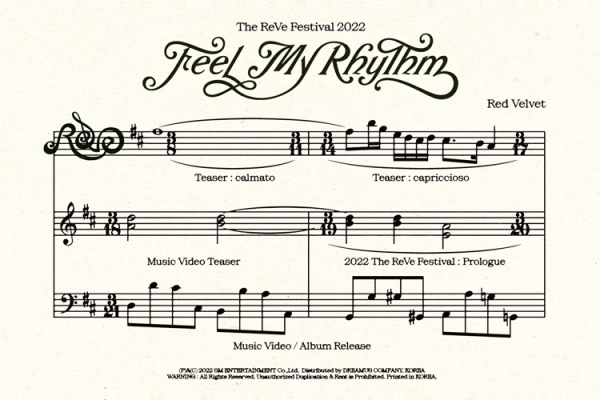오늘 0시 레드벨벳 각종 SNS 계정을 통해 공개된 스케줄 포스터에는 새 미니앨범 ‘The ReVe Festival 2022 - Feel My Rhythm’과 관련된 다채로운 콘텐츠 오픈 일정이 담겨 있어, 컴백 기대감을 증폭시켰다.