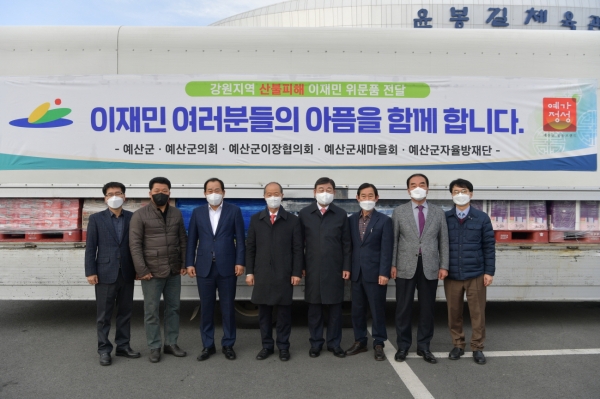 [세종타임즈] 예산군은 10일 최근 강원지역에 발생한 대규모 산불로 어려움을 겪는 해당 지역 주민을 위해 각종 생필품으로 구성된 위문품을 지원했다고 밝혔다.