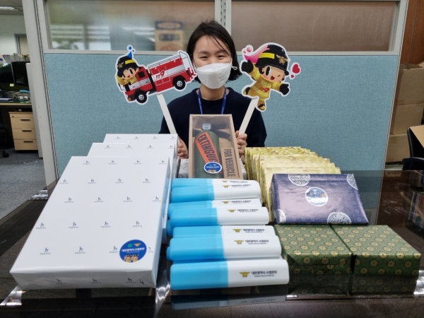 선물에는 지난 7일 노음초등학교 학생들이 화재 진압중이던 대전소방관들에게 감사편지와 응원간식을 전달해준 예쁜 마음에 대한 고마움을 담았다.