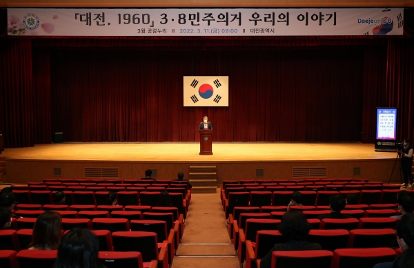 [세종타임즈] 대전시는 11일 시청 대강당에서 3월 공감누리을 실시하고 희망직원을 대상으로 3·8민주의거를 주제로 제작한 독립영화 ‘대전, 1960’를 시청하는 시간을 가졌다.