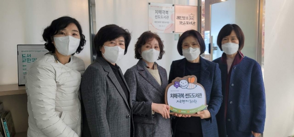 [세종타임즈] 예산군은 지난 11일 내포신도시에 위치한 레인보우작은도서관을 ‘2022년 치매극복 선도도서관’으로 지정하고 현판을 전달했다.