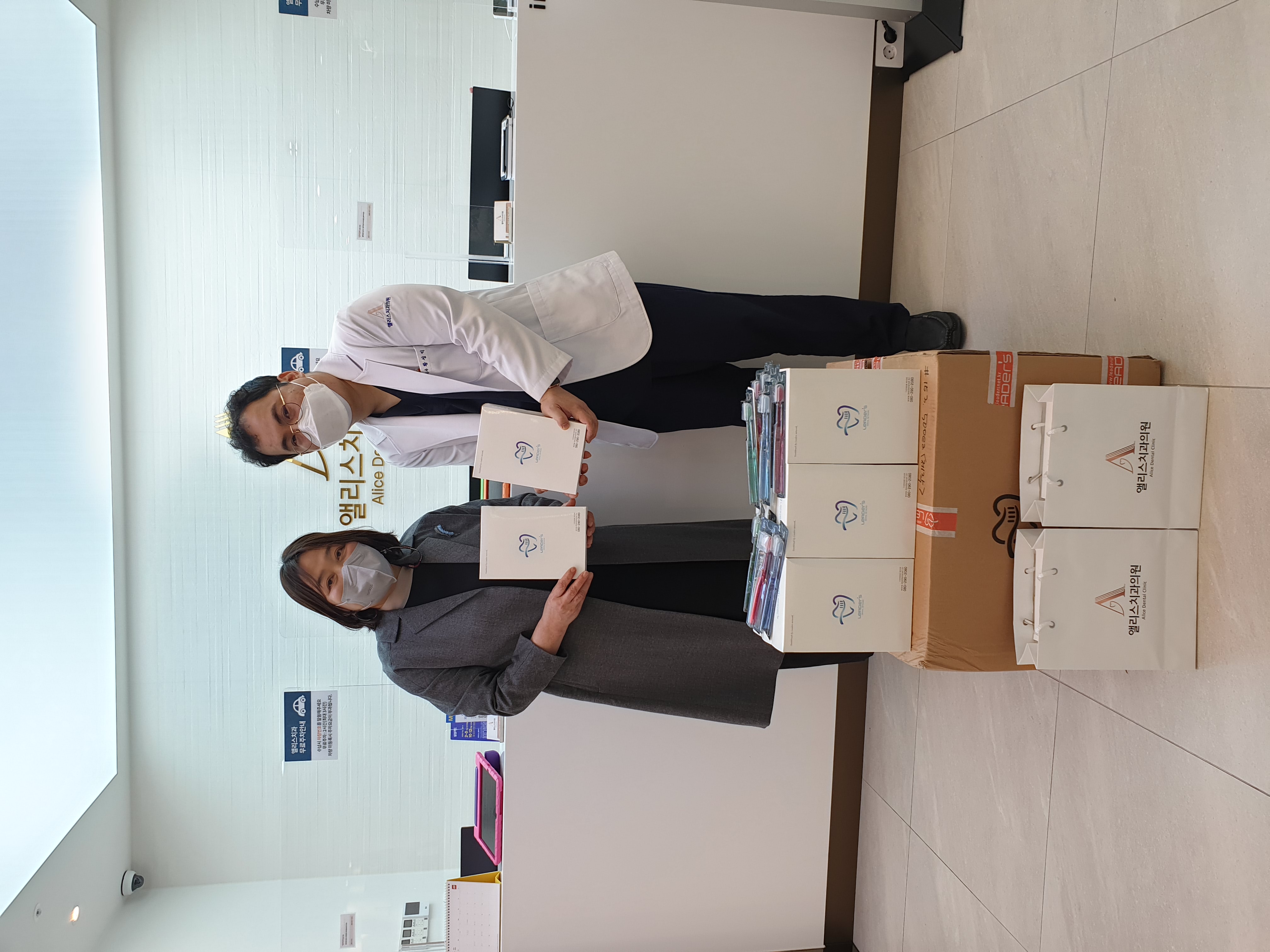 앨리스치과의원에서 코로나19로 어려운 때 이웃을 위한 나눔을 실천하고자 ‘희망나눔꾸러미지원사업’ 물품으로 칫솔 500개를 후원하였다.