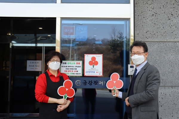[세종타임즈] 세종특별자치시 연기면이 사랑의 열매 착한가게에 동참한 골프존파크 연기에이스점, 금강장어마을을 찾아 ‘착한가게 현판’을 전달했다고 18일 밝혔다.