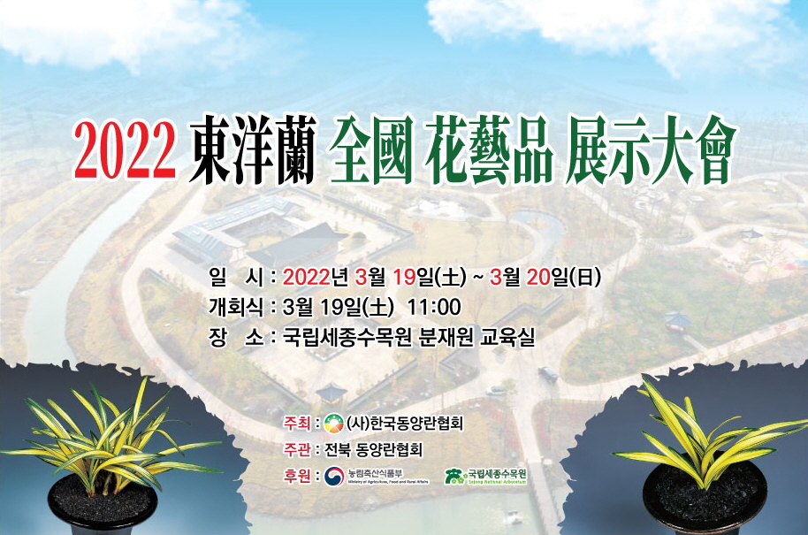 국립세종수목원은 3월 19일~20일 양일간 분재원에서 지역사회와 함께 만들어가는 수목원·정원의 사회적 가치 실현을 위한 ‘2022 동양란 전국 화예품 전시대회’를 개최한다.