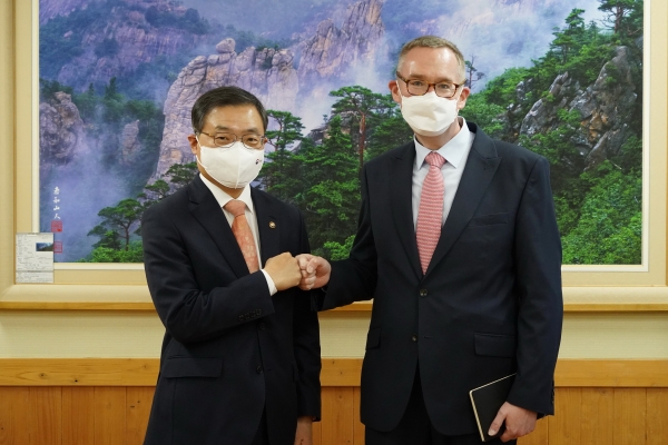 최병암 산림청장은 “영국 글래스고에서 개최된 제26차 유엔기후변화협약 당사국총회의 논의와 성과가 세계산림총회를 통해 더욱 빛날 수 있도록 크룩스 대사님과 주한영국대사관에서 적극적으로 지원해주시기를 바라며 향후 한-영 간 산림협력이 구체화 되어 건설적 산림협력이 이루어질 수 있기를 바란다”고 말했다.