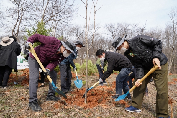 이날 오전에는 화성시 소재 상신도시숲에서 정현찬 농어업농어촌특별위원회 위원장, 윤순진 탄소중립위원회 위원장, 최창호 산림조합중앙회장 등 임업 협·단체장 등 100여명이 참석한 가운데 나무 심기 행사를 했다.