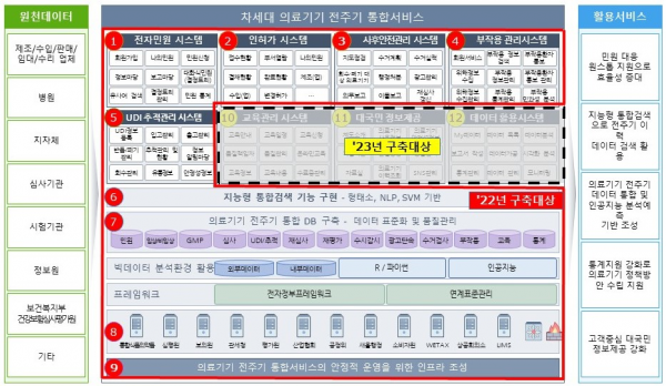그간 분야별로 나뉘어 있는 의료기기 안전관리 시스템을 하나의 플랫폼으로 통합해, 연구·개발 단계부터 시판 후 부작용 관리까지 의료기기 안전 정보를 한눈에 파악할 수 있도록 구축한다.