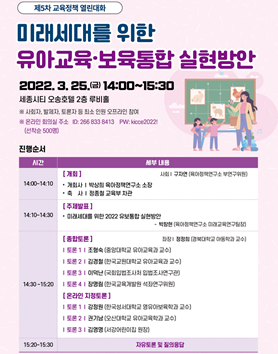 이번 제5차 교육정책 열린 대화에서는 ‘미래세대를 위한 유아교육·보육 통합 실현 방안’을 논의한다.