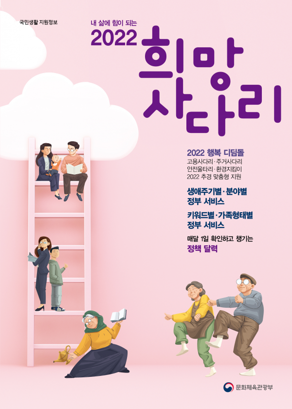 이에 문화체육관광부는 3월 28일 우리 국민들이 생활 필수 지원정보 등을 책 한 권에서 쉽게 찾을 수 있도록 ‘내 삶에 힘이 되는 희망사다리 2022’를 발간했다.